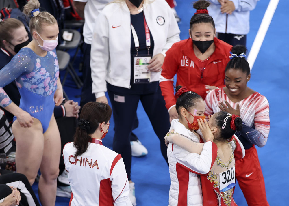 最后一个出场的管晨辰获得了全场的最高分,拜尔斯获得铜牌。此刻,我预想的画面变成了现实:拜尔斯和其他国家的运动员纷纷走向中国队,用微笑、鼓掌和拥抱的方式送来祝贺。