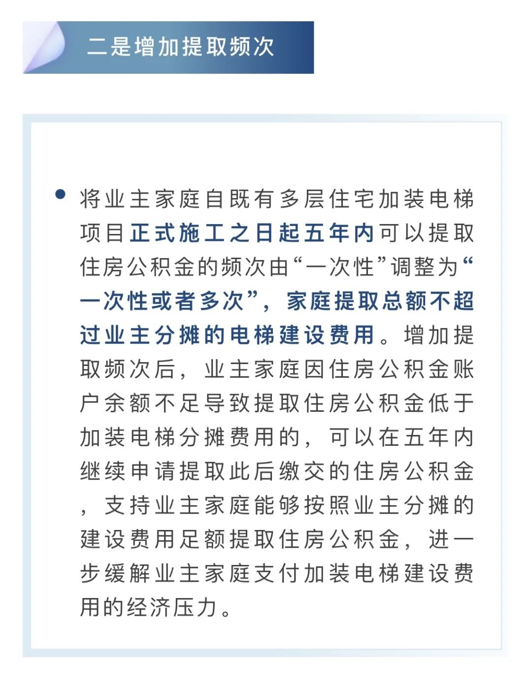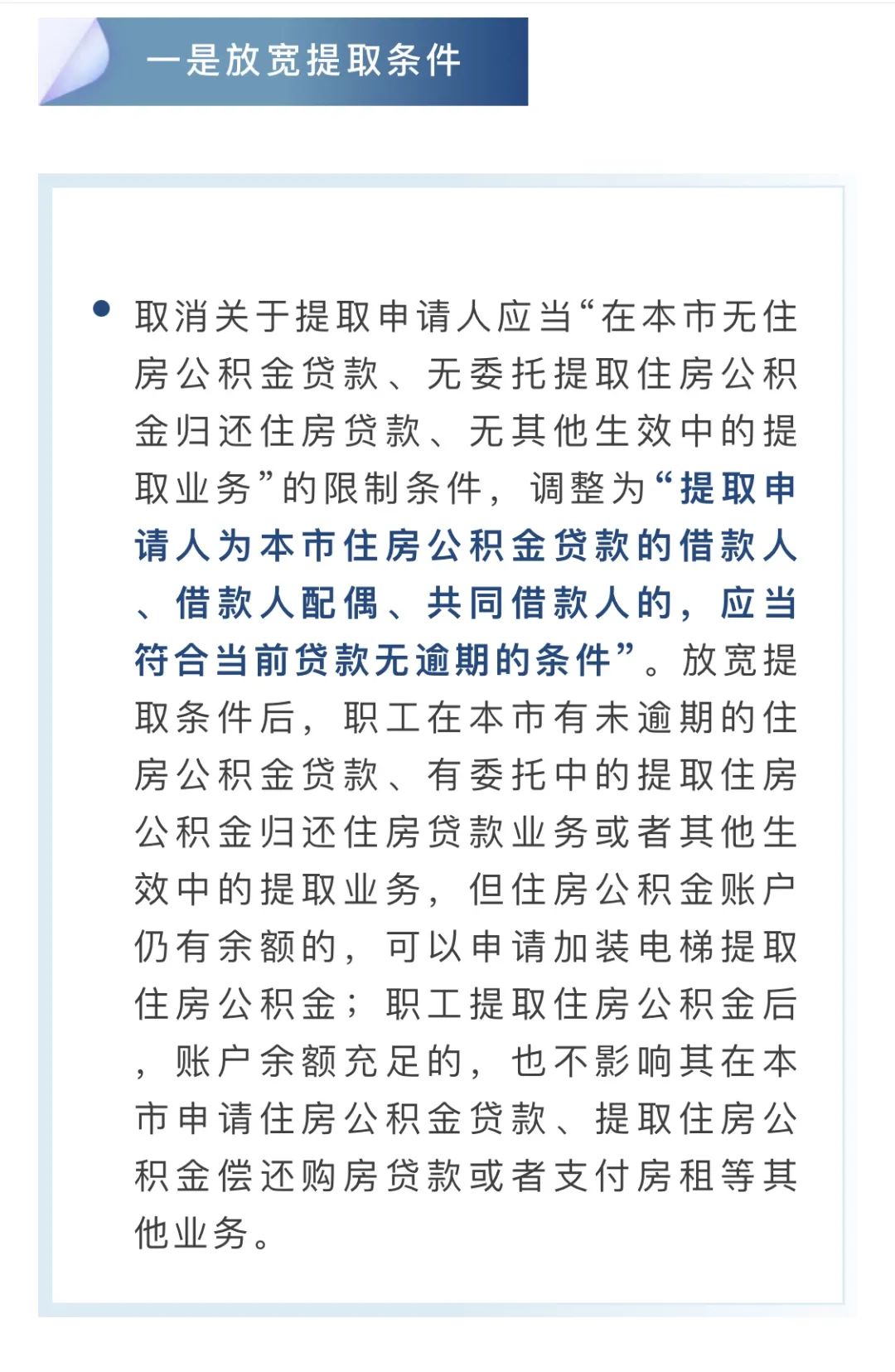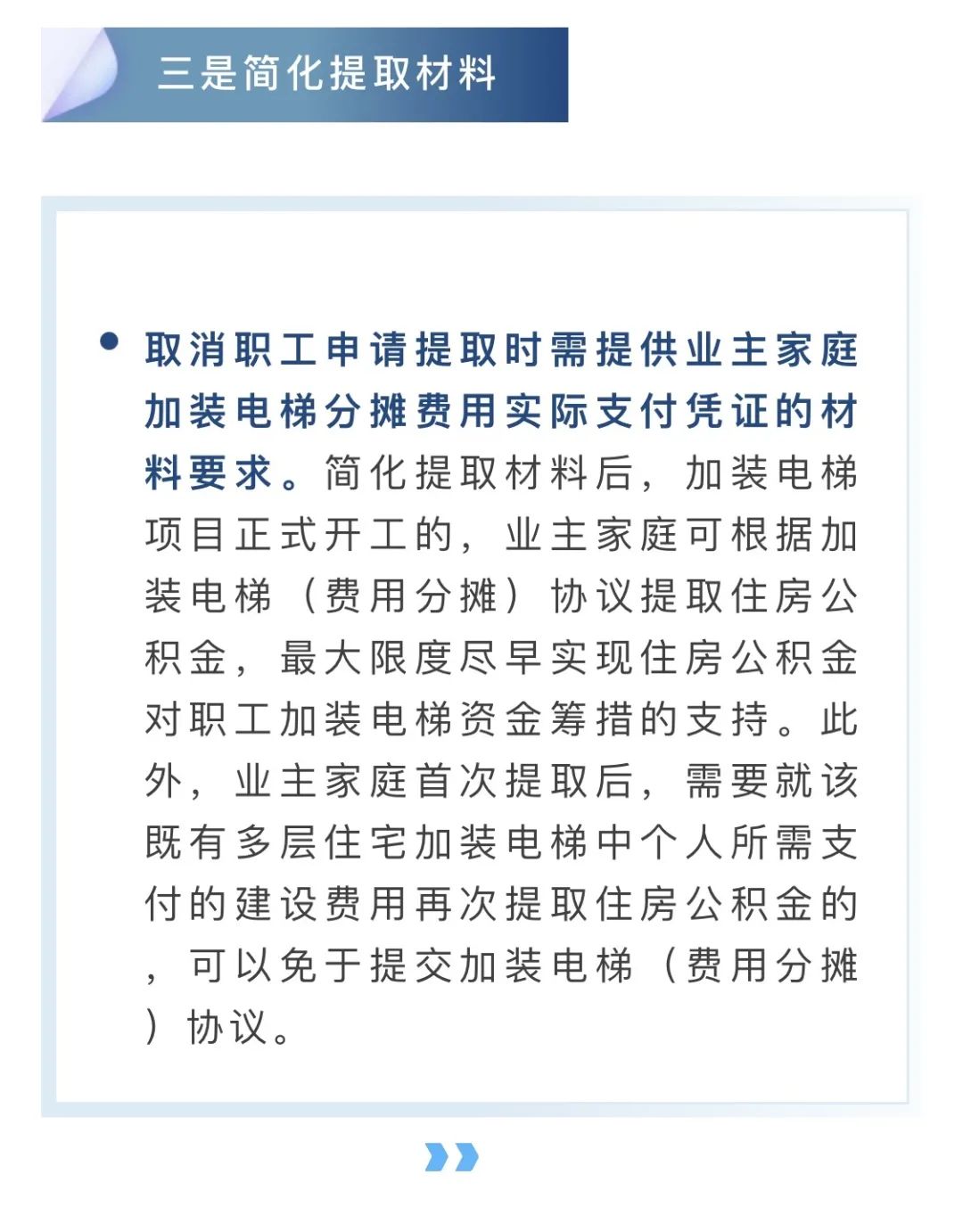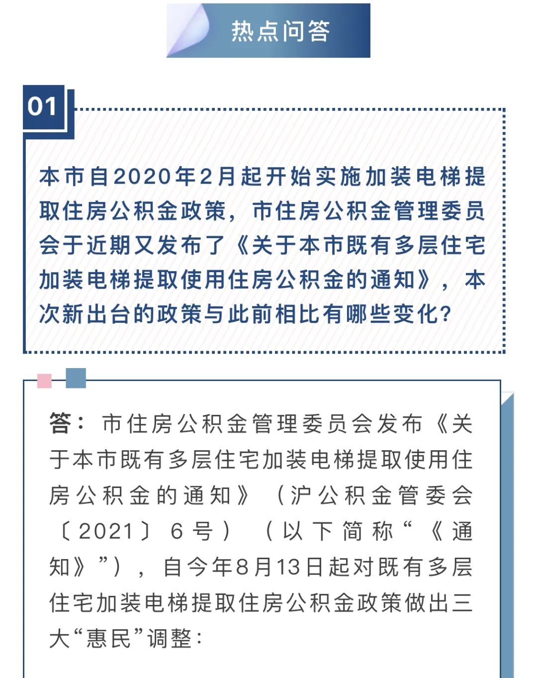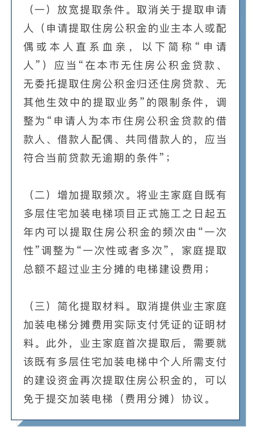 市公积金中心说,本市自2020年2月起开始实施加装电梯提取住房公积金政策,自今年8月13日起对既有多层住宅加装电梯提取住房公积金政策做出三大“惠民”调整:一是放宽提取条件;二是增加提取频次;三是简化提取材料。详见↓
