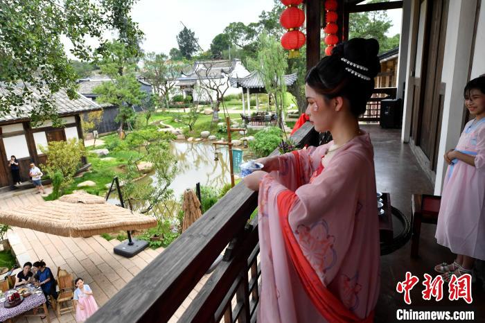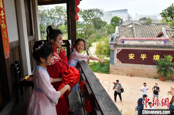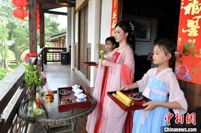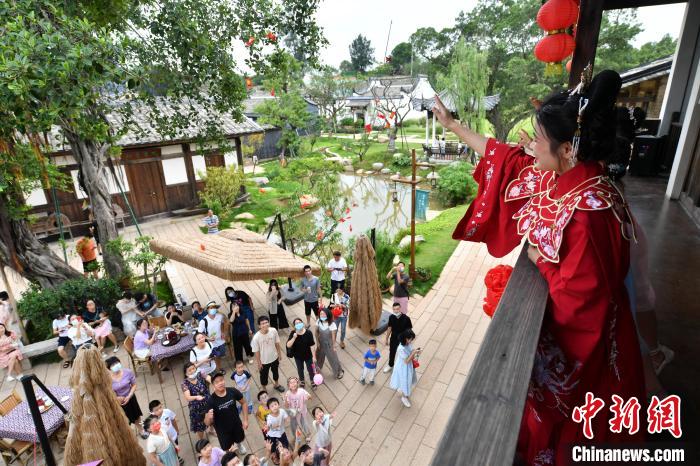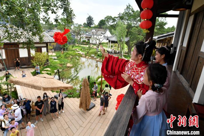 8月14日七夕节,福州梁厝历史文化街区内举行“拜织女”、抛绣球等七夕传统民俗活动,吸引了许多游客驻足观看。