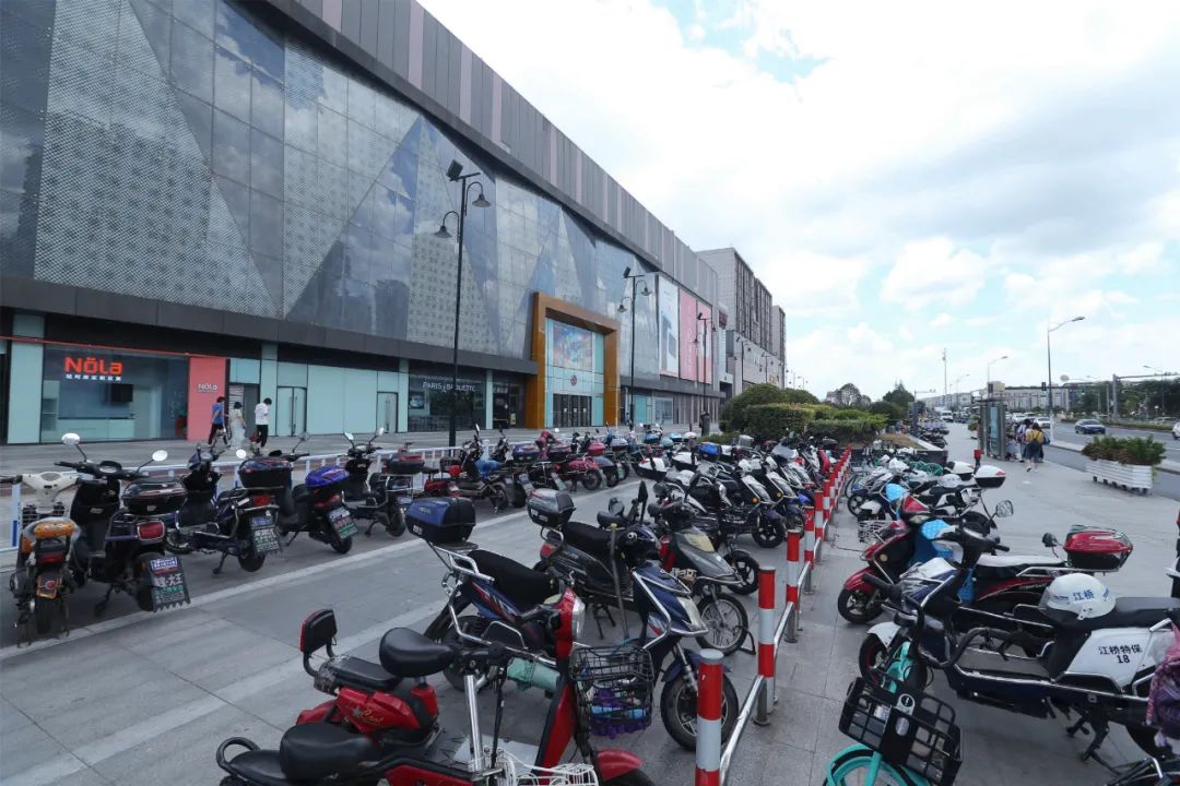 江桥万达广场周边的非机动车停放量约为6000辆,高峰时达到近8000辆。其中,共享单车和外卖车辆的乱停放问题尤为突出。