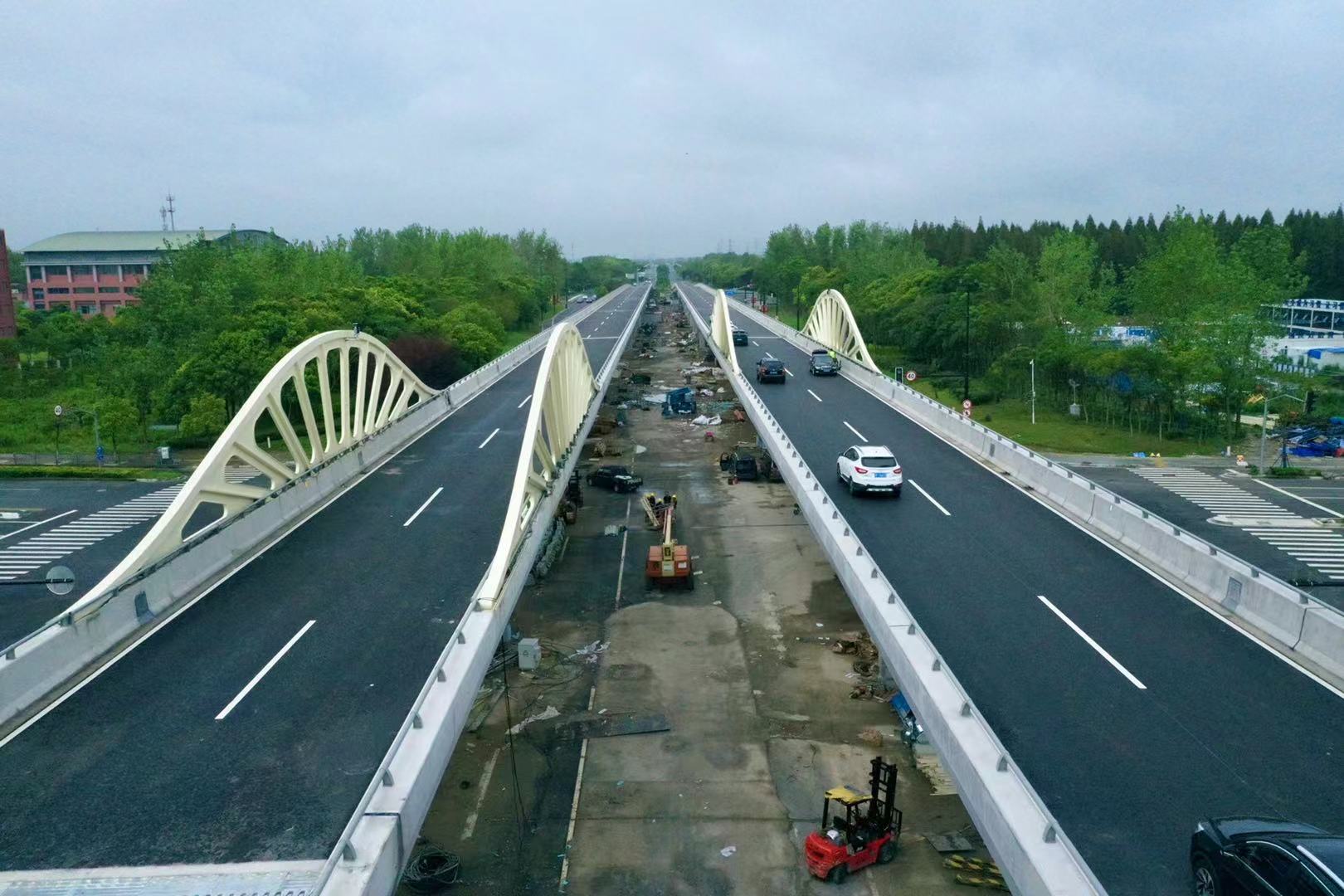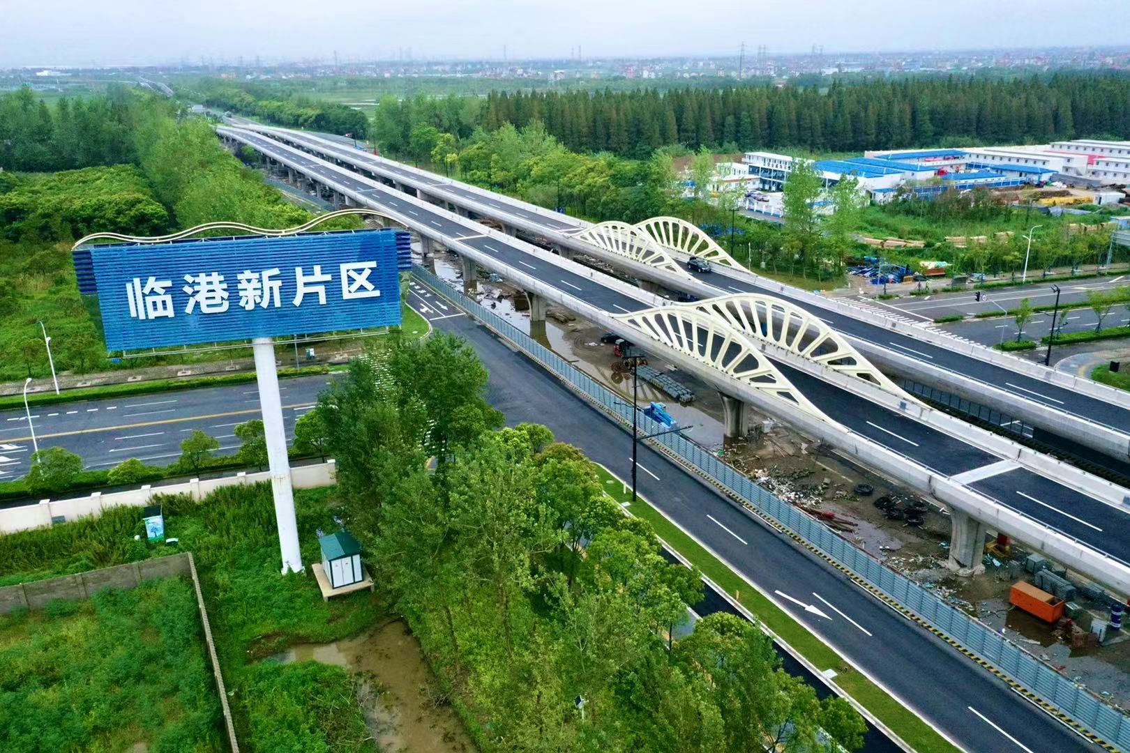 工程西起随塘河西侧,东至沪城环路交叉口,采用“主线跨线桥+地面辅道”形式,全长约1.6千米,均为双向4车道。其中,主线跨线桥长约950米,设计车速为60千米/小时,辅道长约1千米,设计车速为40千米/小时,为机动车专用,并在水华路以西设置非机动车道和人行道。这一工程通车后强化了道路南北两侧联系,对加强周边区域整体开发具有重要意义,是构筑临港新片区独立完善综合交通体系的重要工程之一。