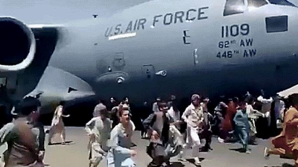 ▲2021年,“他们一无所有,但他们获得了自由”:数千名阿富汗人涌入喀布尔卡尔扎伊国际机场跑道,试图追逐并登上正要起飞的美军C-17运输机。