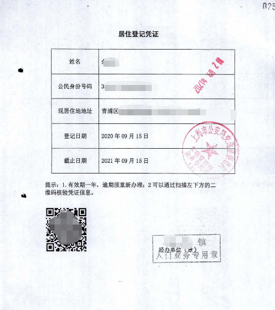 韩某某出售的虚假居住登记凭证 青浦检察院供图