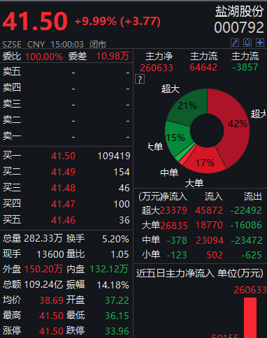 成交再破百亿!盐湖股份涨停,国泰君安一营业部买入5亿元