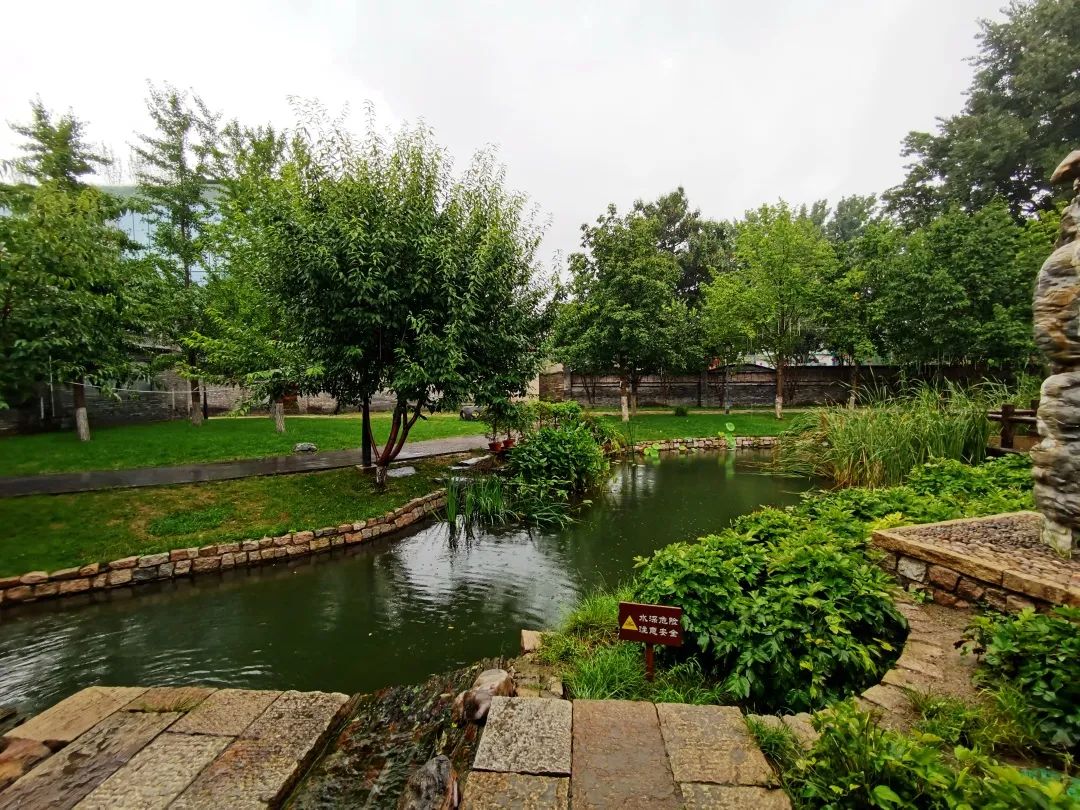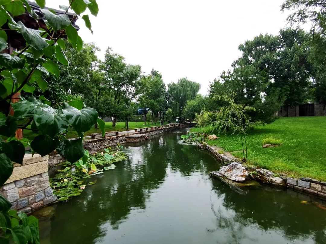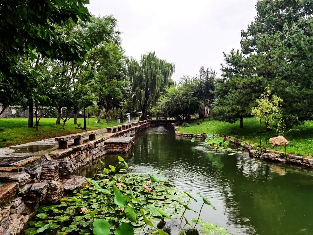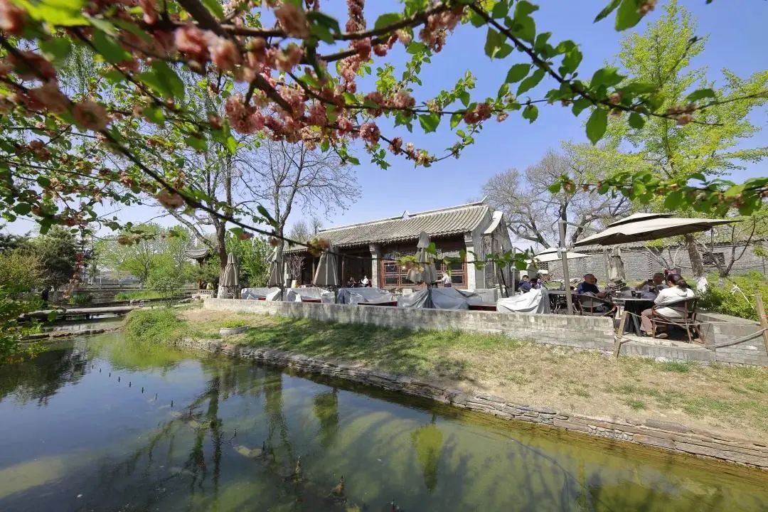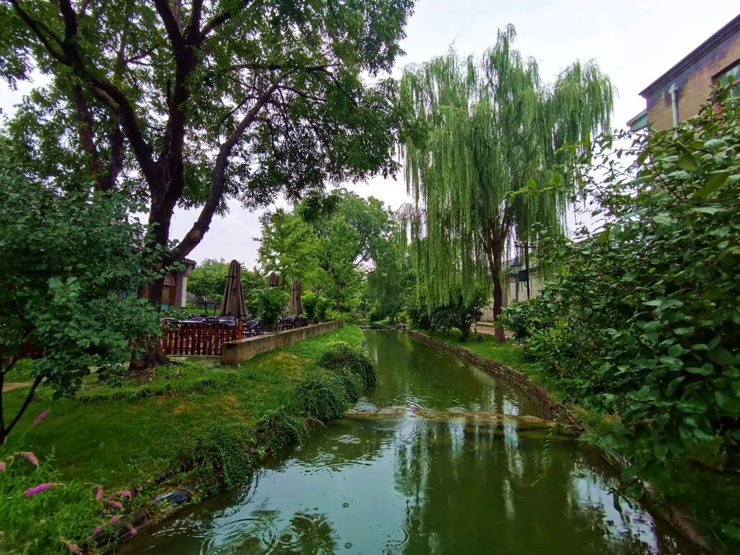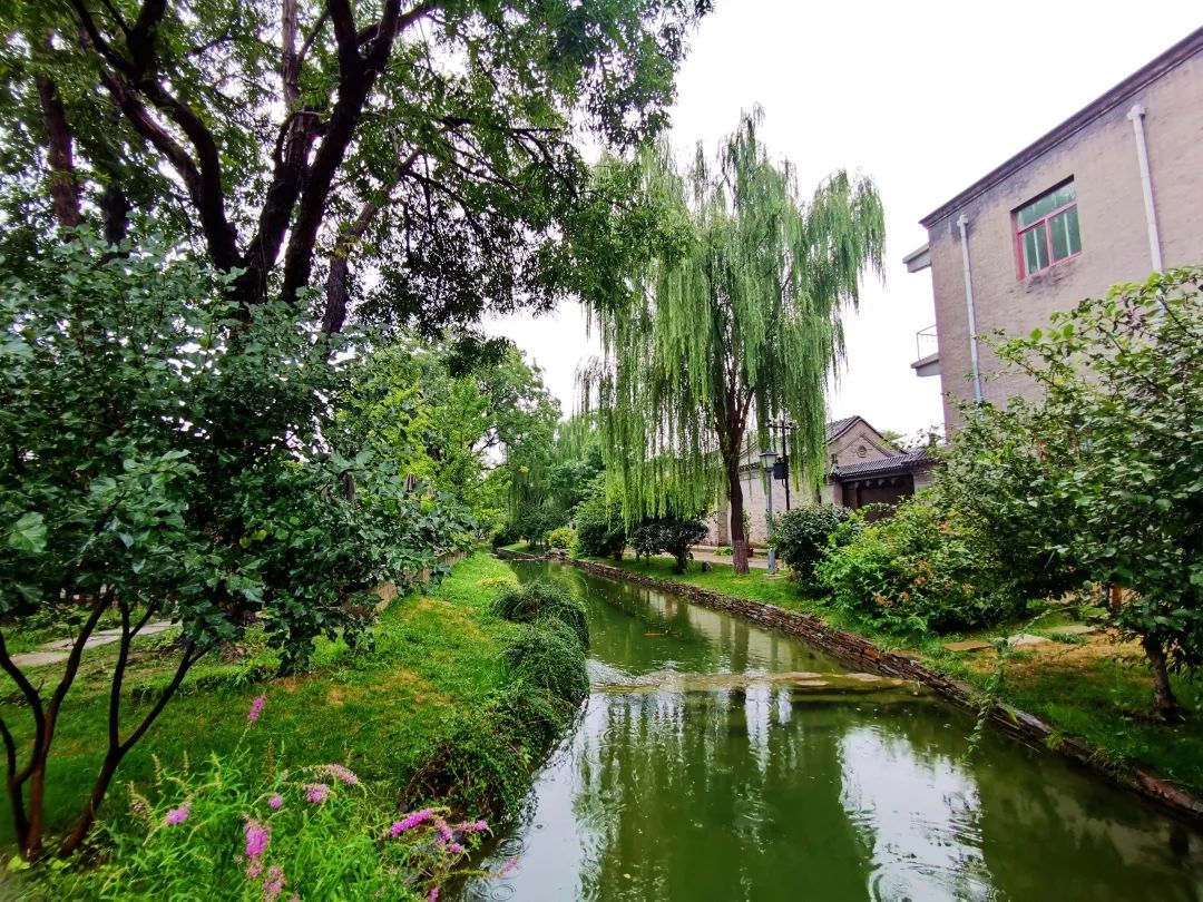 河道里莲花盛开、鱼儿在水中嬉戏、河两旁则种有迎春、桃花、丁香等花卉,不同时节各有各的美。