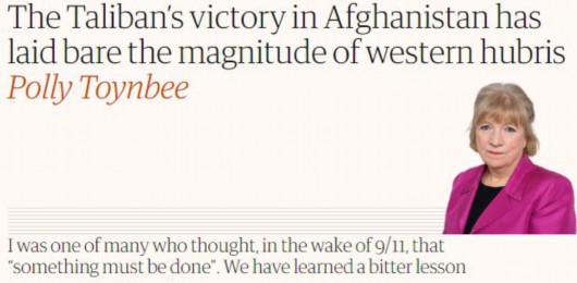 △英国《卫报》专栏作家波莉·汤因比认为,阿富汗战争的结局再次将西方的傲慢和自大暴露无遗。