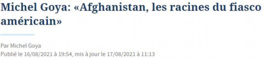 △法国历史学者米歇尔·戈亚在《费加罗报》发表题为《阿富汗,美国惨败的根源》的文章指出,美国在阿富汗的行动“从一开始就是灾难性的”。