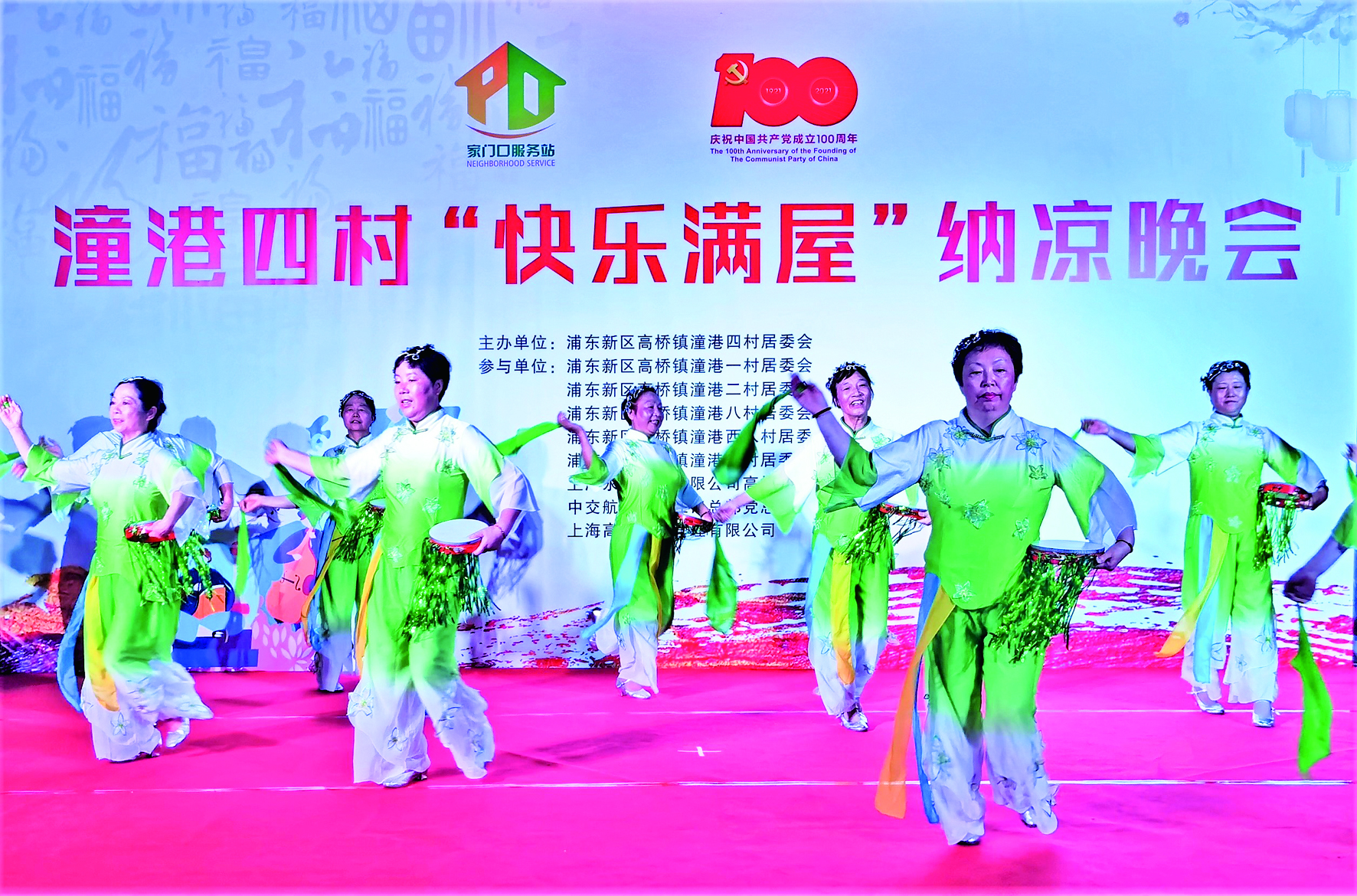 7月21日,潼港四村在东兴苑小广场开展了“快乐满屋”纳凉晚会活动。潼港片区居民是晚会的“草根主角”:有来自潼港一村的合唱《我和我的祖国》、潼港二村的爵士舞蹈、潼港五村的诗朗诵《百年辉煌》、潼港八村的合唱《绣红旗》、《唱支山歌给党听》、潼港西八村的舞蹈《沂蒙颂》等表演。图文/张小芳