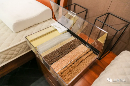 工作人员向小松展示了一款名为“棕情”的天然床垫,该床垫曾荣获“中华老字号优秀创新产品”称号。床垫内置两个内胆,由黑山棕、乳胶、3D材料配置而成,可自由翻转,组合出8种不同的支撑硬度,不仅能满足不同用户的睡眠需求,更能在一年四季中自由调整,以适应不同季节及温度的睡眠环境。活动期间,该床垫不仅可享满减优惠、加购优惠,还有乳胶枕等精美礼品赠送。