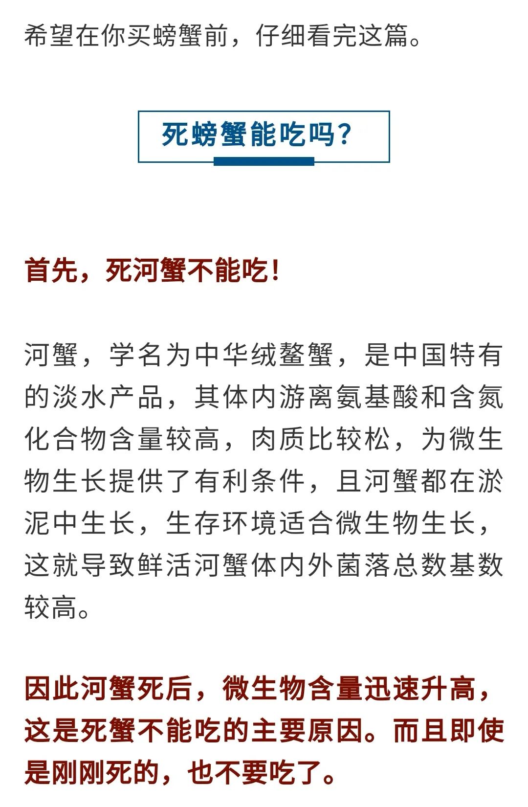 刚死的螃蟹能吃吗?哪些部位不能吃?误食可能会死人