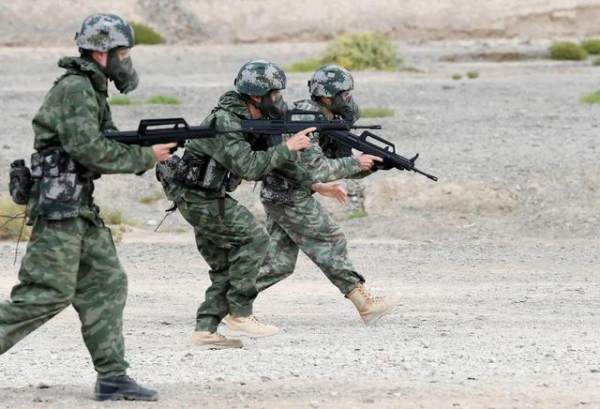 中国火箭军队进行手榴弹投掷。解放军报记者 王俊 摄