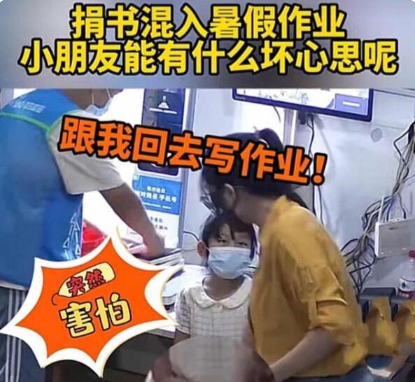 眼看没几天就要开学了,杭州的这名小女生还没有完成暑假作业,于是她趁着与妈妈一起去快递点参加公益捐书活动,把未完成的暑假作业也夹在里面企图“送走”。如果小女生独自一人去快递点参加公益捐书,或者快递小哥打包时没有注意到暑假作业本,这名小女生的暑假作业肯定会顺利“送走”。