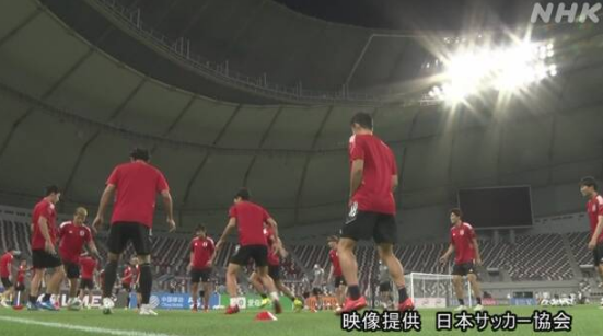 NHK:日本队已经抵达了位于卡塔尔多哈的比赛场地,开始了训练,备战与中国队的比赛。
