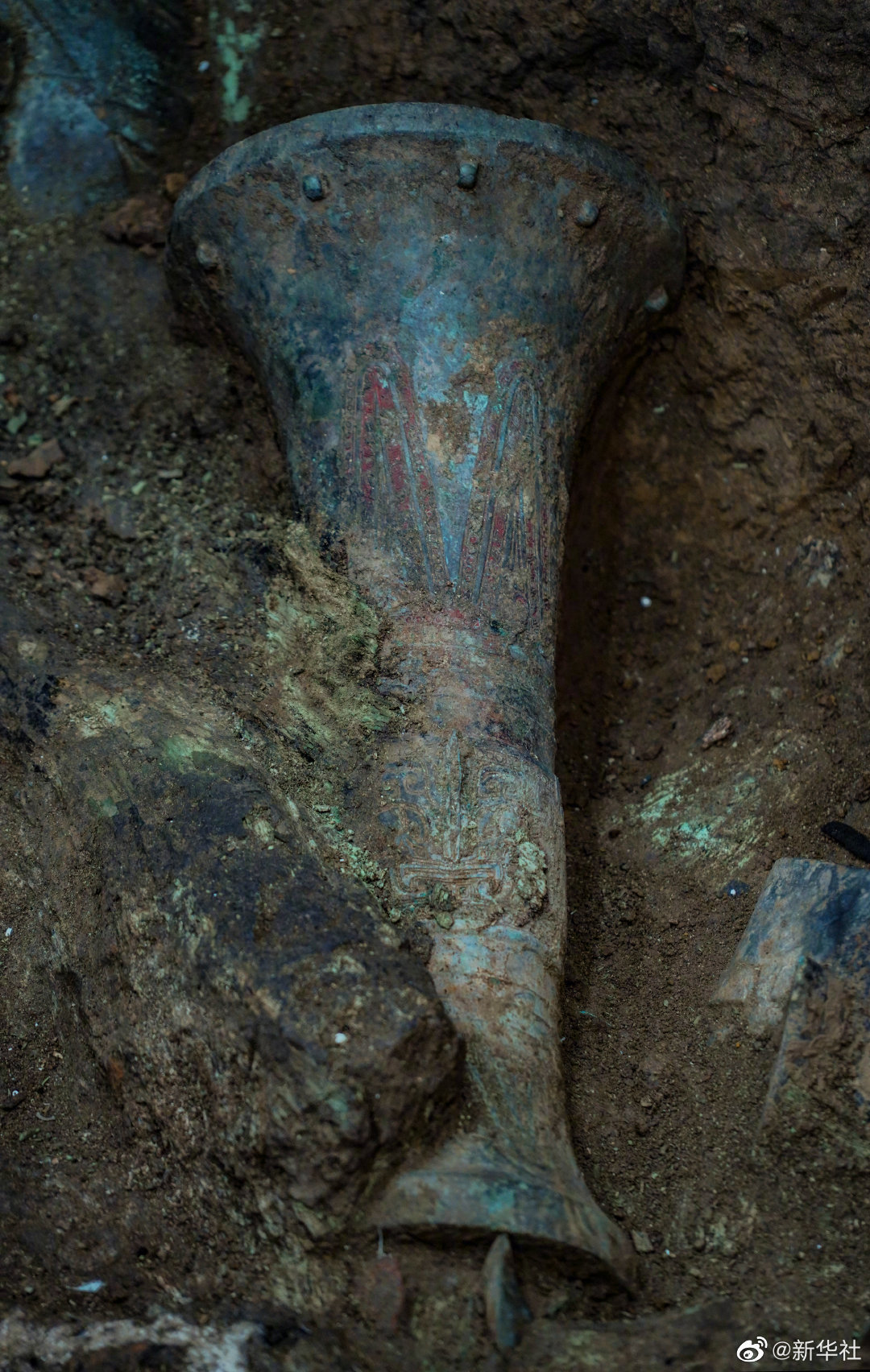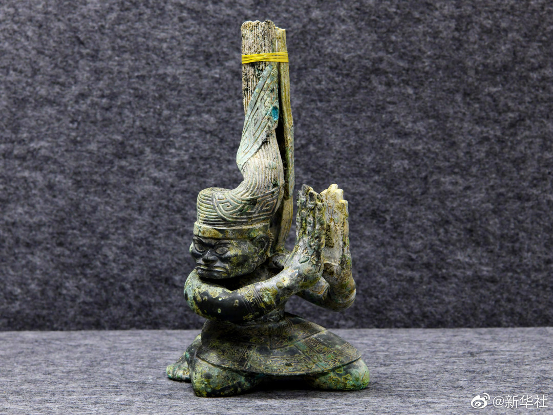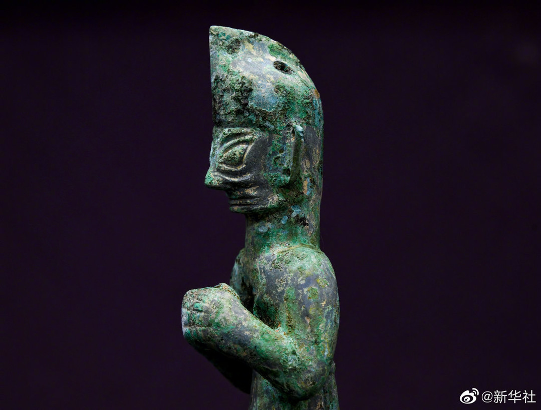 此次新发现的金面具比正常人脸稍大,两件青铜“神坛”造型迥异,朱砂彩绘觚型尊、神树纹玉琮见证了我国早期各区域文明的交流,铜扭头跪坐人像、玉刀展现了高超技艺,还有造型酷似“诸葛亮”“奥特曼”的青铜人像惊艳亮相。