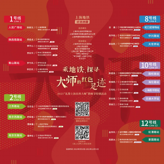 9月10日,上海市社会科学界联合会、上海市精神文明建设委员会办公室、上海申通地铁集团有限公司联合启动“乘地铁,探寻大师的红色足迹”暨2021“礼赞上海社科大师”教师节特别活动