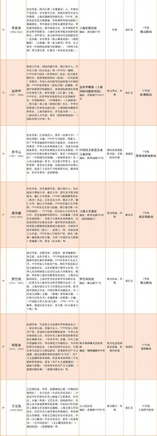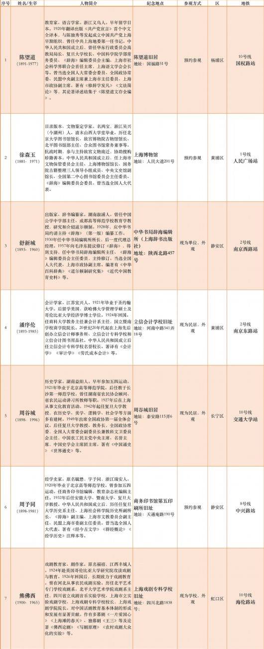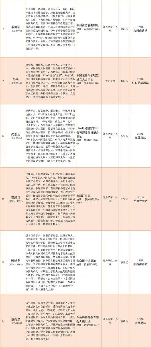 国权路站(陈望道旧居)、海伦路站(上海戏剧专科学校旧址)、上海图书馆站(王元化旧居)、交通大学站(周谷城旧居,贺绿汀旧居)
