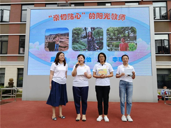 课程部韦敏老师为获得“亲切贴心的阳光教师”称号的李琛老师、张怡老师、周琼华老师颁发荣誉证书。