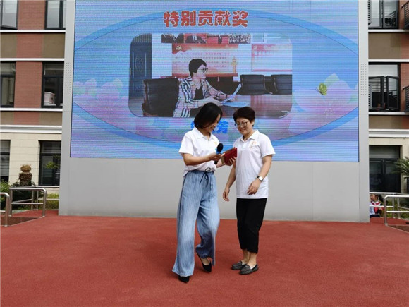 在这个特别的日子里,赵卫英书记为大家揭晓了专门为援疆教师朱庆芳老师设置的“特别贡献奖”,以表彰朱老师甘于奉献、大爱无疆的崇高精神。