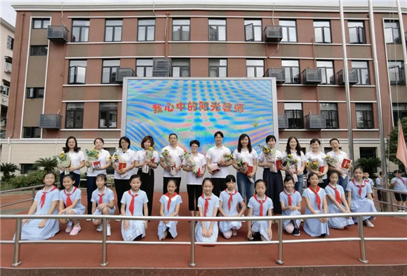 随后,少先队员代表为阳光教师们献上最美的鲜花。