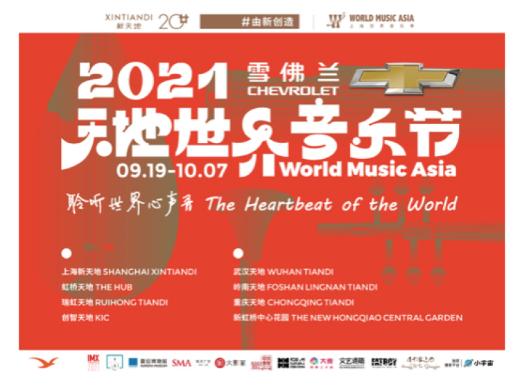 这一盛事由XINTIANDI新天地与上海世界音乐季联袂打造、上汽通用雪佛兰品牌全程独家冠名赞助,横跨中秋、国庆两大节庆档期,于9月19日至10月6日登陆上海、武汉、重庆、佛山四城七大项目及长宁新虹桥中心花园,由27支音乐团队呈献68场精彩演出。
