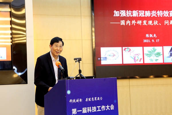 图三:陈凯先院士作主题为《加强新冠肺炎特效治疗药物研发——国内外研发现状、存在问题和对策建议》的报告。