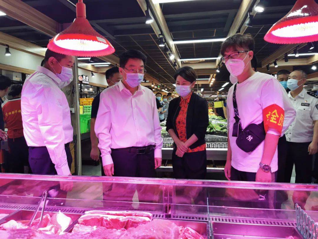 区委书记高朋到南竺园市场,检查节日期间商品供应及消防安全工作落实情况。