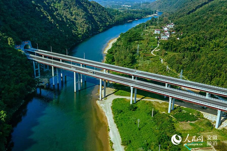 池祁高速多次跨越如诗如画秋浦河。人民网记者苗子健摄