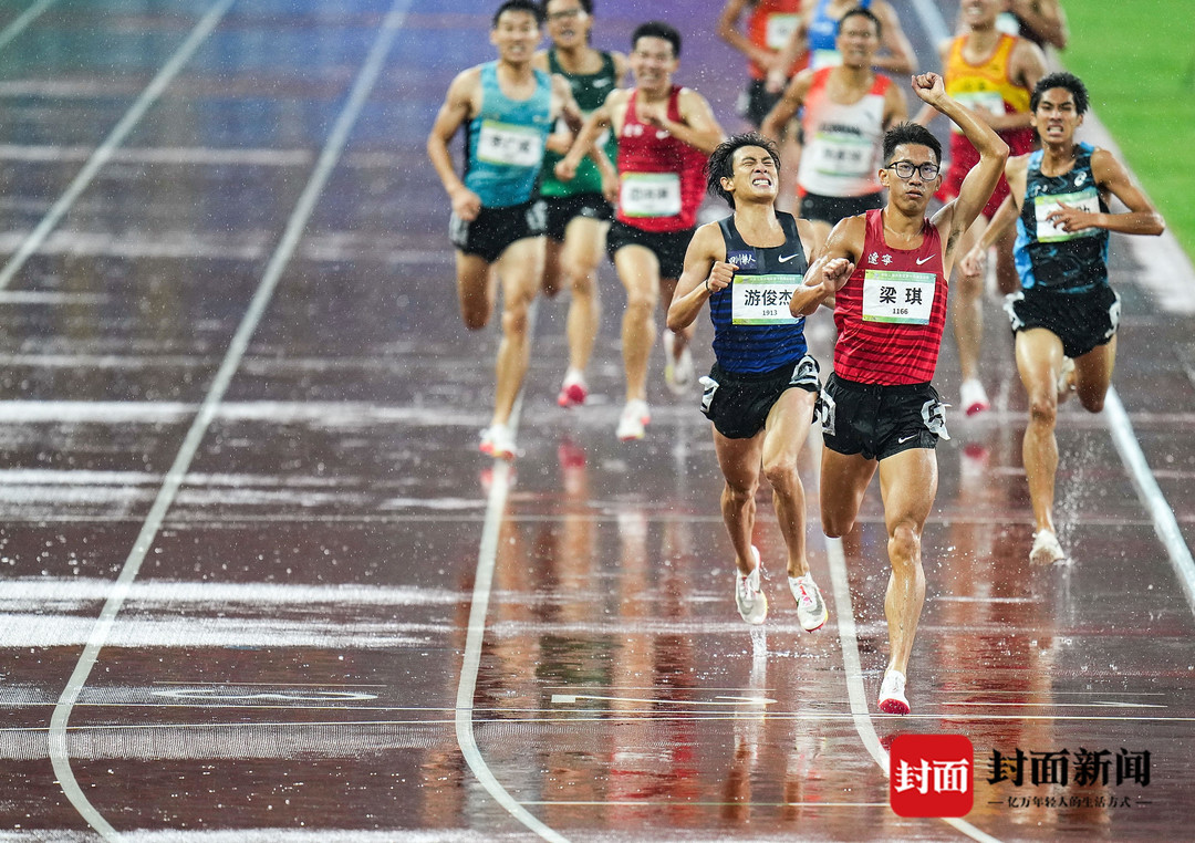 本届全运会男子1500米比赛,汇集了广西名将刘德助、浙江名将奚枭横、辽宁名将梁琪、边诗淋,以及卫冕冠军山东名将骆玉玺,他们的个人最好成绩都在3分45秒以内,最具夺金实力。此外,现男子1500米室内全国纪录(3分45秒36)保持者河北名将王少杰,云南名将宗庆华,以及两位清华名将分别代表山西队、四川队出战的李俊霖、游俊杰也具备冲金实力。最终,梁琪以3分47秒98的成绩夺冠,代表四川出战的游俊杰以3分48秒22获得银牌,刘德助3分48秒99获得铜牌。
