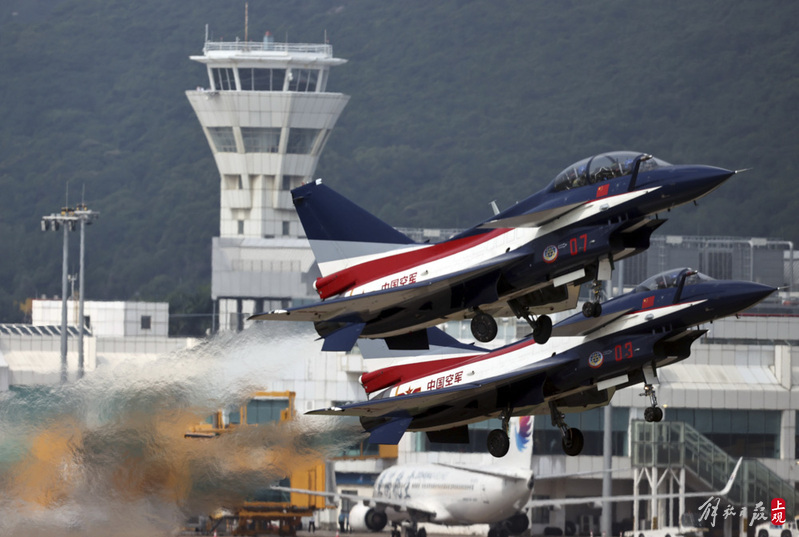 中国空军八一飞行表演队帅气登场。