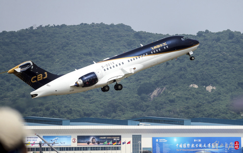 中国商飞公司,首次在国际航展上展示CBJ公务机和C919移动数字飞机展示平台。