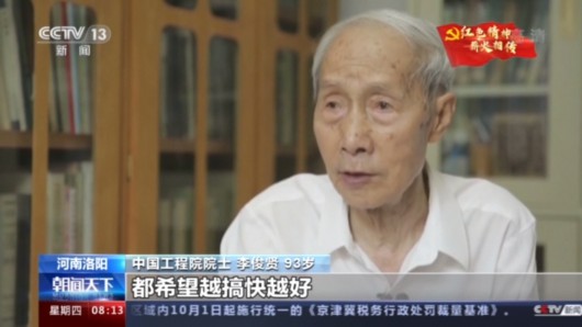 中国工程院院士 李俊贤:那个时候,一般见到面不谈困难,谈什么呢?大家就是说完成没有完成(科研任务)啊。主要的就是想怎么样把这个国家急需的东西搞出来,都希望越搞快越好,为国家争口气。
