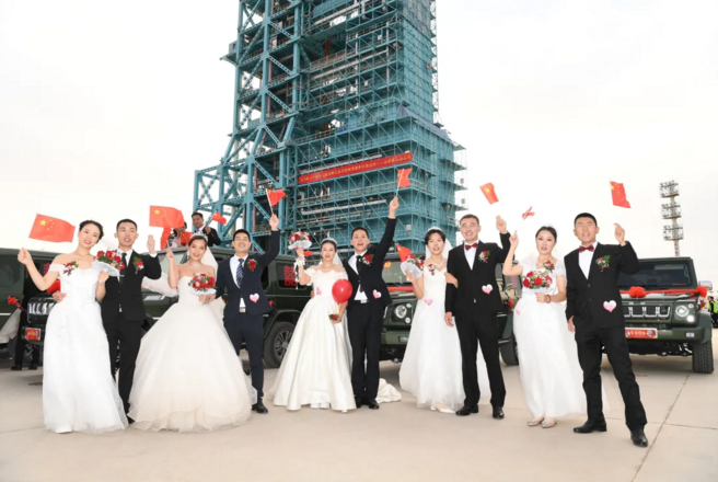 据悉,酒泉卫星发射中心已连续10年为950多对航天新人举办集体婚礼。前不久,该中心圆满完成了神舟十二号载人飞船搜索回收任务,即将迎来神舟十三号飞船发射任务的大会战、大决战。