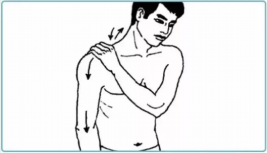 操作:两手轻握拳,用小鱼际一侧,轮流拍击对侧肩、臂部,从颈项、肩部至上臂、前臂部,自上而下,反复轻松拍击约3分钟。