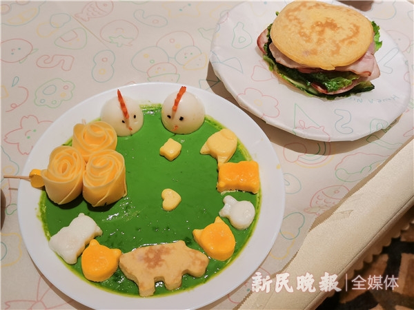 “幸福小窝”则以独具创意的鸡窝、流心的奶黄巧克力和可爱的蛋白小鸡,营造出了小鸡一家温馨的生活,既有童真,食材也很丰富。同样温馨的还有“蛋暖晨曦”,学生们用鸡蛋制作出适合儿童的菠菜蛋羹、适合成人的欧姆蛋堡和适合中老年的营养蛋米糊,让一家人起床即可享用美味早餐。