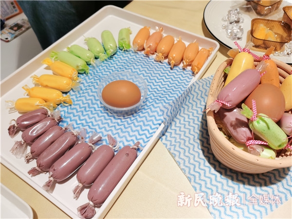 含蛋的益菌多,你喝过吗?上海应用技术大学同学们研发的“蛋黄益菌多”,用浓浓蛋香融入绵稠的米露,再配以Q弹劲道的椰果粒,让人忍不住想多喝两口。而一根根五颜六色的“一口好蛋肠”,是用新鲜热豆浆加入全蛋液和不同种类的蔬菜汁,灌入肠衣后制成,不仅颜色可爱、健康营养,吃起来也很方便。
