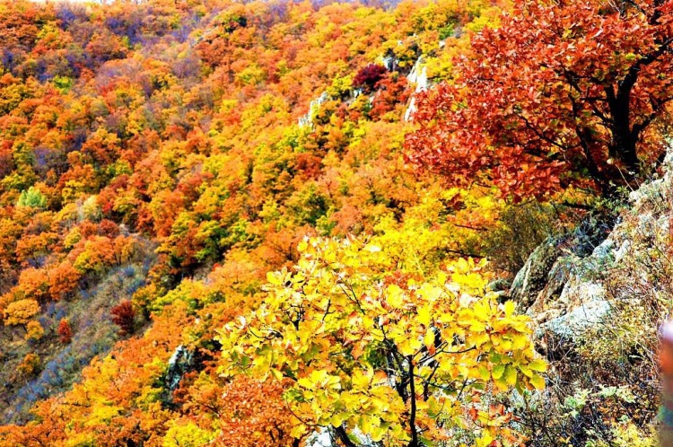 五花山是针叶阔叶混交林山区深秋时节的一道独有景观。随着天气转冷,特别是当下了头一场霜后,山中的枫树、槭树、桦树、杨树、松树等树种的叶子颜色开始变深,呈现出五彩斑斓的色彩,漫山遍野,缤纷炫目。