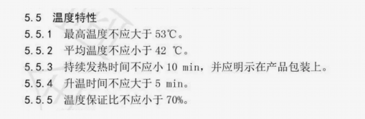 市面上也有可作热敷的蒸汽眼罩,T/SHRH 028—2020《蒸汽眼罩》中规定该类产品的最高温度不得超过53℃。