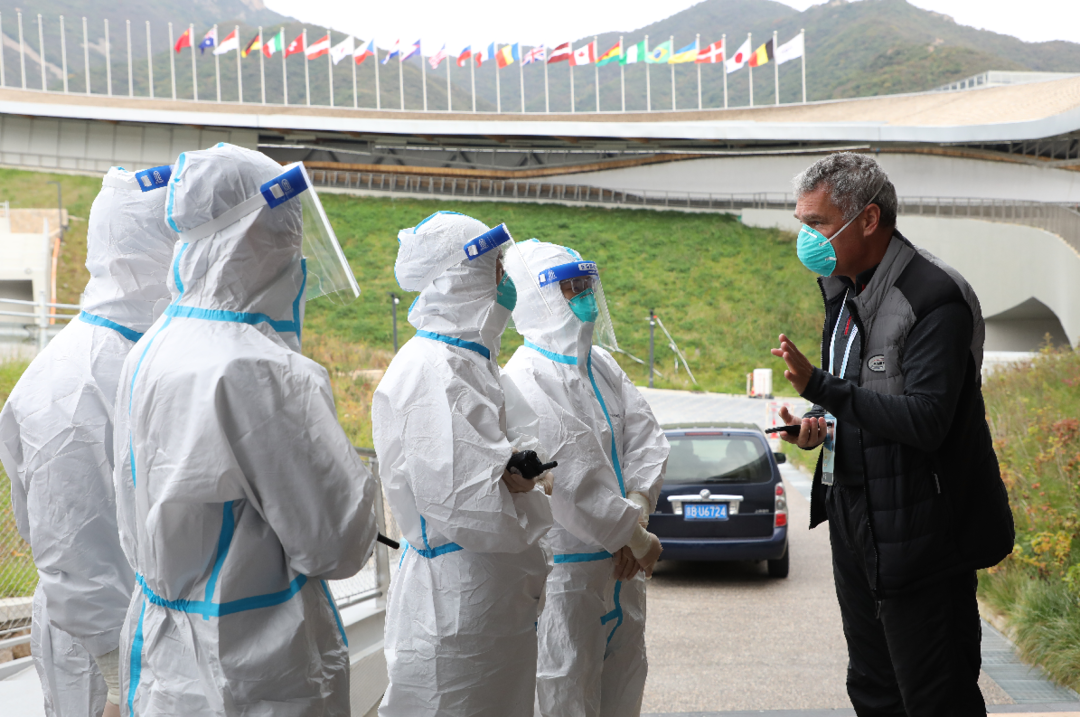 国际雪车、雪橇联合会首席医疗官克里斯蒂安·施耐德医生等6名国际单项组织联合会官员共同观看救援演练,并对医疗团队进行现场培训和指导。
