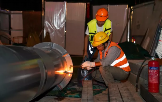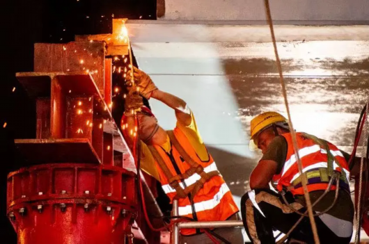 10月4日晚,天桥连廊二期漕溪北路两侧开始吊装立柱。10月9日凌晨,天桥连廊的主体结构正式开始吊装施工作业。凌晨1点,天桥预制结构件从体育馆运至施工现场,工人们登上结构件,将五根钢索牢牢锁定在钢结构件上,确保安全无误后,起重机开始进行吊装作业,重达52吨的钢结构被缓缓抬起,大约一小时后,15*6米的钢结构边跨被牢牢焊接在了指定位置,工程第一阶段圆满成功。