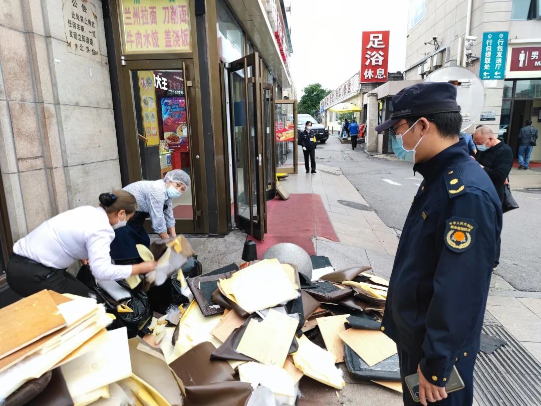 执法人员依据《北京市市容环境卫生条例》有关规定,向违规堆放杂物垃圾的商户开具了执法文书,责令立即整改,在城管队员监督下,店铺迅速清理,现场恢复正常秩序。