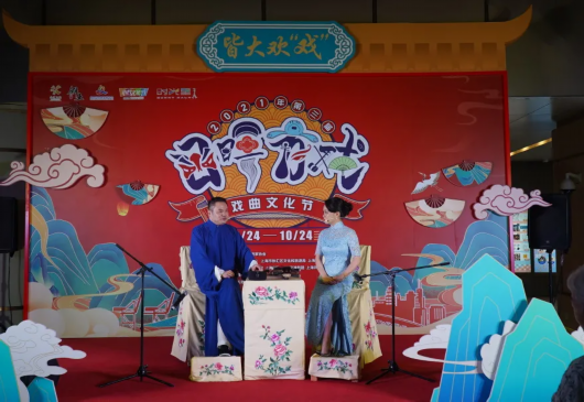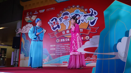 10月8-10日,“日晖有戏·戏曲之夜”在上海保利时光里新时代文明实践点唱响,连续三日,每晚18:30阵阵悠扬的戏曲声从中庭广场传来,逛街的市民们循声而至,除了能欣赏京昆淮越沪评弹六大院团带来的精彩戏曲表演,更有好玩又好看的戏曲场景互动,好逛又有趣的戏曲文创市集,带你近距离感受戏曲带来的魅力。