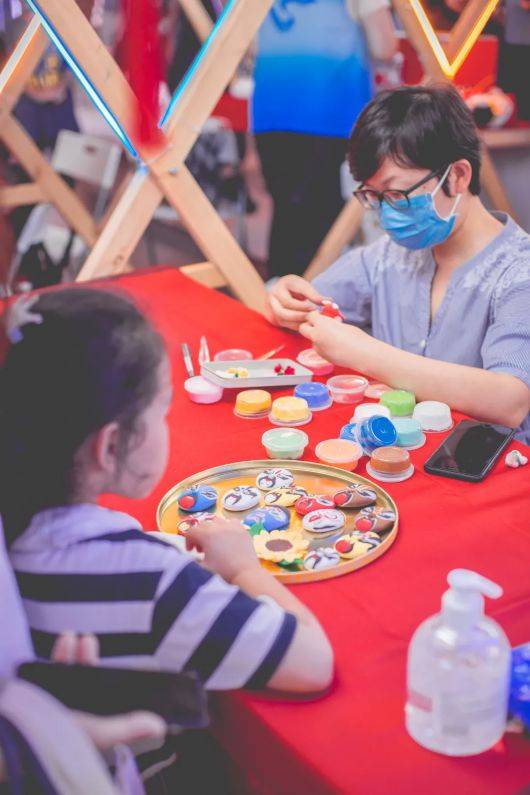 文创市集,是人文的具象表达,作为“戏曲之夜”的另一重磅板块,戏曲夜市在商场中庭的西侧举行,本次为期三天的市集汇聚了超过20种文创品牌,为市集注入更多时尚化和生活化的力量。观众不仅可以购买由六大院团带来的各类包含戏曲元素的文创产品,还可以体验非遗海派面塑、非遗上海剪纸、非遗京剧名家脸谱画等一系列传统技艺,感受指尖上的艺术。