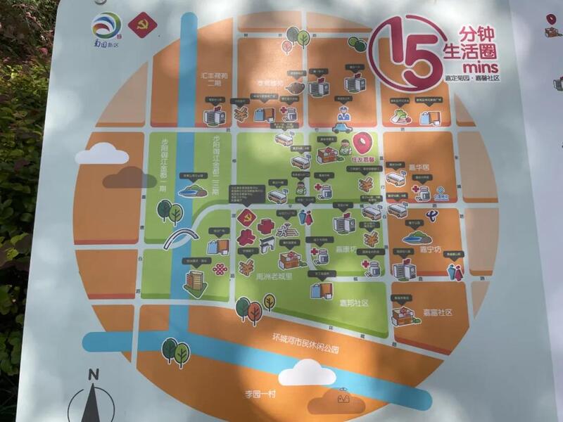 庄佳微是嘉定规划设计院的规划师,是嘉定本地人。两年前,她被聘为社区规划师。“我最近参与绘制了20多幅15分钟社区生活圈地图,现在菊园的每个小区门口都有这样一张地图。居民可以按图索骥,找到附近的医院、图书馆、学校等。”