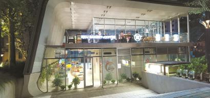 再往东走几百米,是长风湾苏河驿站,开放时间显示为10时至20时。驿站提供无线网络、充电设备以及雨伞等服务,但记者没有找到直饮水,服务员说咖啡开水暂时不供应。驿站外摆着一个自动售货机,里面陈列着七八款饮料和饼干等小吃,却没有矿泉水。驿站大门玻璃上标识有“公共厕所”,但是记者环望四周,并没见到厕所。向保安询问后,才得知要走到后面几排楼。