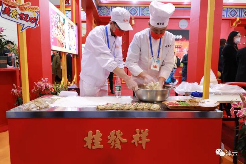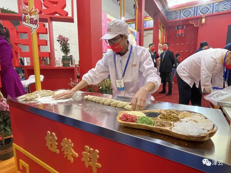 您在桂发祥展台还可以在观看到国家级非遗技艺——麻花搓制。天津桂发祥食品销售有限公司研发工程师邓嘉进告诉记者,桂发祥这次带来了津门老味、锦缎等经典手工制作麻花,以及创新产品夹馅麻花。