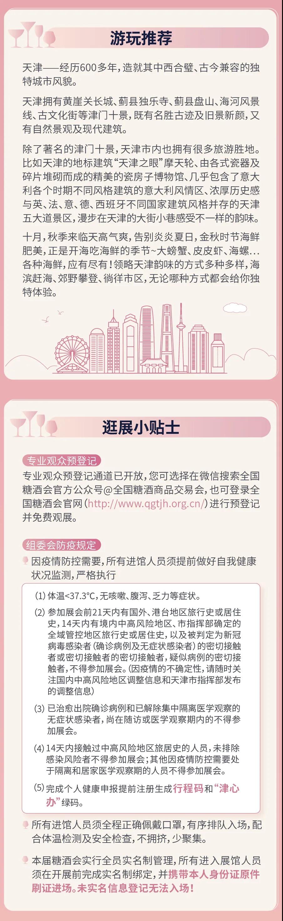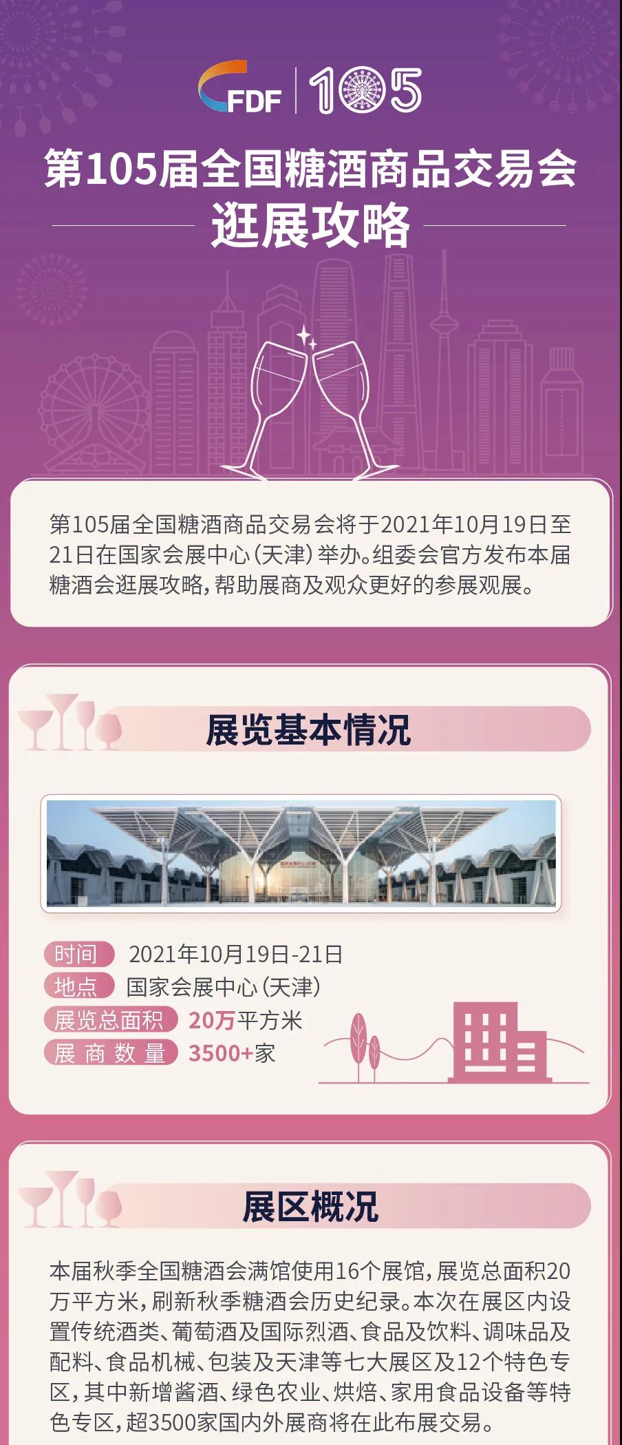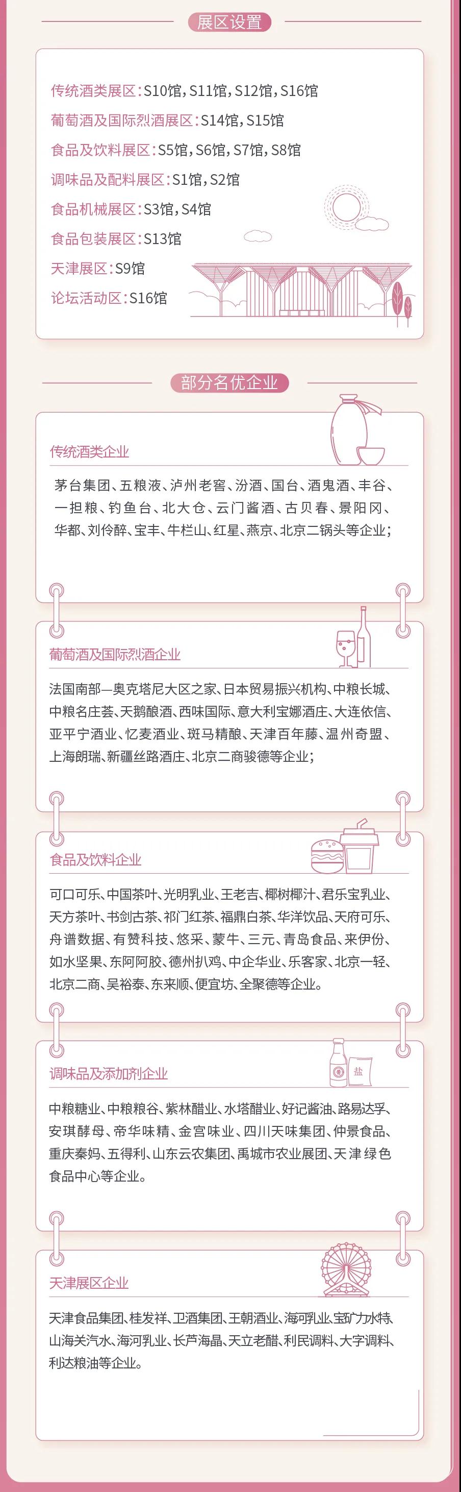 糖酒会设置传统酒类、葡萄酒及国际烈酒、食品及饮料、调味品及配料、食品机械、包装及天津展区等七大展区。