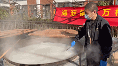 粥香飘散,满心期待。居民们早早排起长队,手里拎着准备盛粥的盆,脸上洋溢着笑容,一边聊着家常,一边朝熬粥的方向瞟几眼,翘首等待米粥出锅。随着第一勺热腾腾的粥盛出,居民们笑得更开心了。“这是我们自己的’节’,街坊邻里在一起热热闹闹的,喝了粥心里暖暖的。”