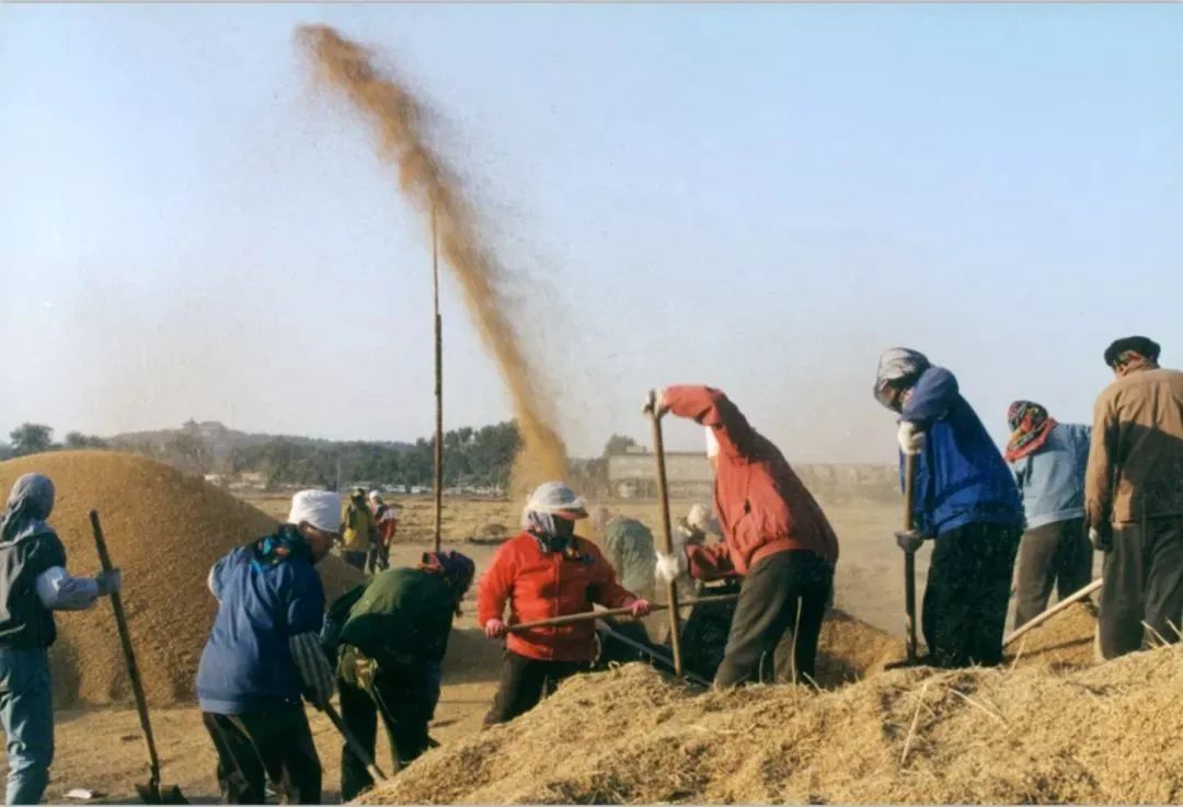△老照片:2000年场院内收获的京西稻