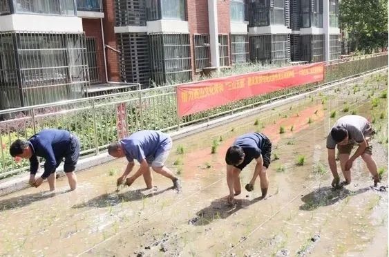 整村拆迁腾退后大家回迁至此。为了不忘却过去的乡情民俗,不被高楼挡住邻里情、烟火气,大家一致赞成在小区种保留半亩左右的空地,恢复京西稻的种植。