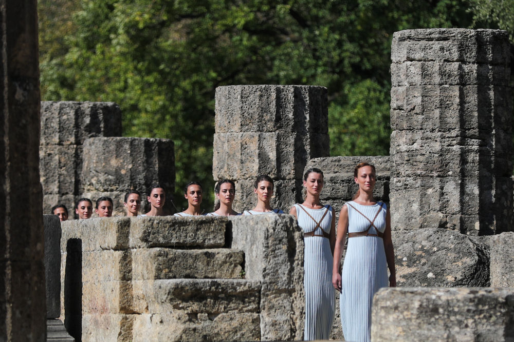 按照报道安排,新华社雅典分社的摄影记者马里奥斯·罗洛斯负责在古奥林匹亚竞技场主拍升旗、嘉宾致辞、火炬传递等环节;我在竞技场旁边的赫拉神庙遗址前重点拍摄火种采集瞬间,之后拍摄仪式表演和火炬传递等环节。
